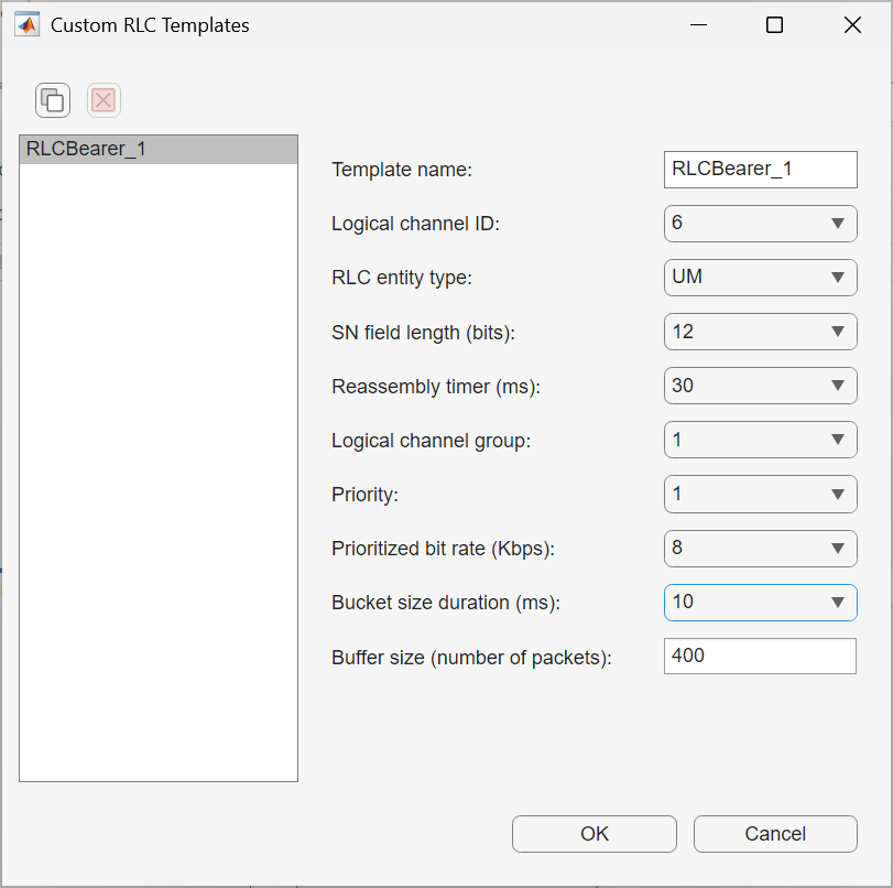 3. In the Custom RLC Templates dialog box, set Bucket Size Duration (ms) to 10.