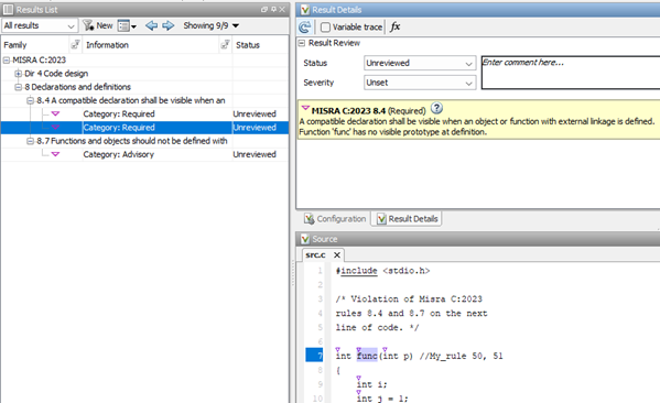 the numbers 50 and 51.You can check this code for MISRA C: 2023 violations by typing the command: