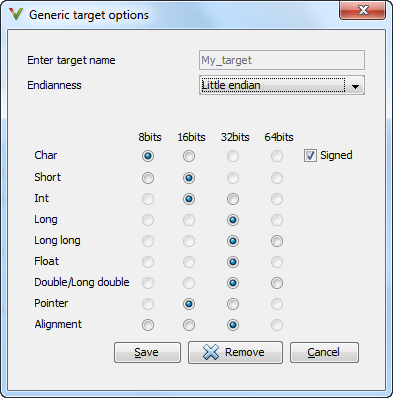 For instance, in the following, the pointer size for a custom target My_target is 16 bits.