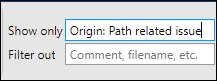 Display only critical orange checks using the text-based filters. In the Show only text filter, enter Origin: Path related issue to see path-related orange checks and Origin: Bounded inputs to see orange checks related to bounded inputs.