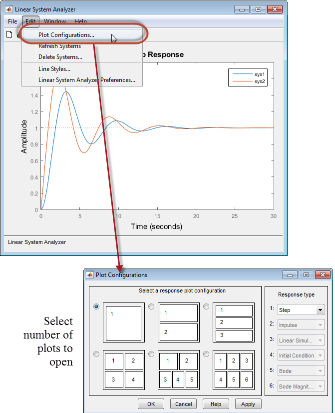 Aprire Linear System Analyzer e visualizzare uno o più modelli utilizzando la seguente sintassi: