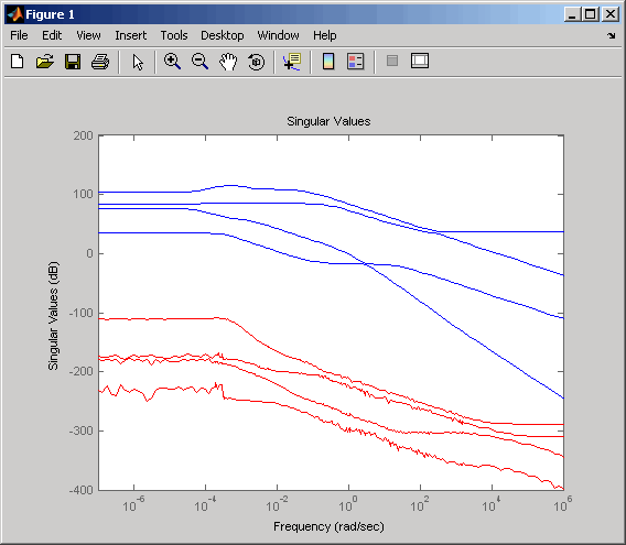 size(gasf)per vedere che il sistema ridotto contiene solo 17 stati.Per facilitare il controllo visivo dell’errore di approssimazione, utilizzare un grafico a valore singolare anziché un grafico di Bode MIMO. Digitare