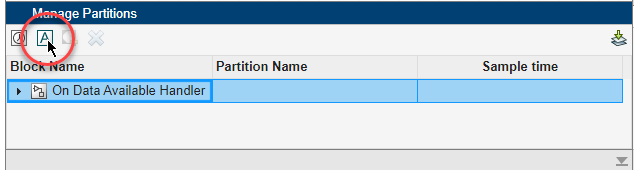 2. In the Manage Partitions pane, under Block Name, select On Data Available Handler, and then click the Schedule as aperiodic partition button.