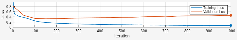 During training using the Time Series Modeler app, select the Training Diagnostics panel at the bottom of the app to see if your model is overfitting. It is difficult to determine why a model is overfitting, but the app provides a list of general suggestions to help prevent overfitting when training a deep neural network. This information is available only for deep learning models.