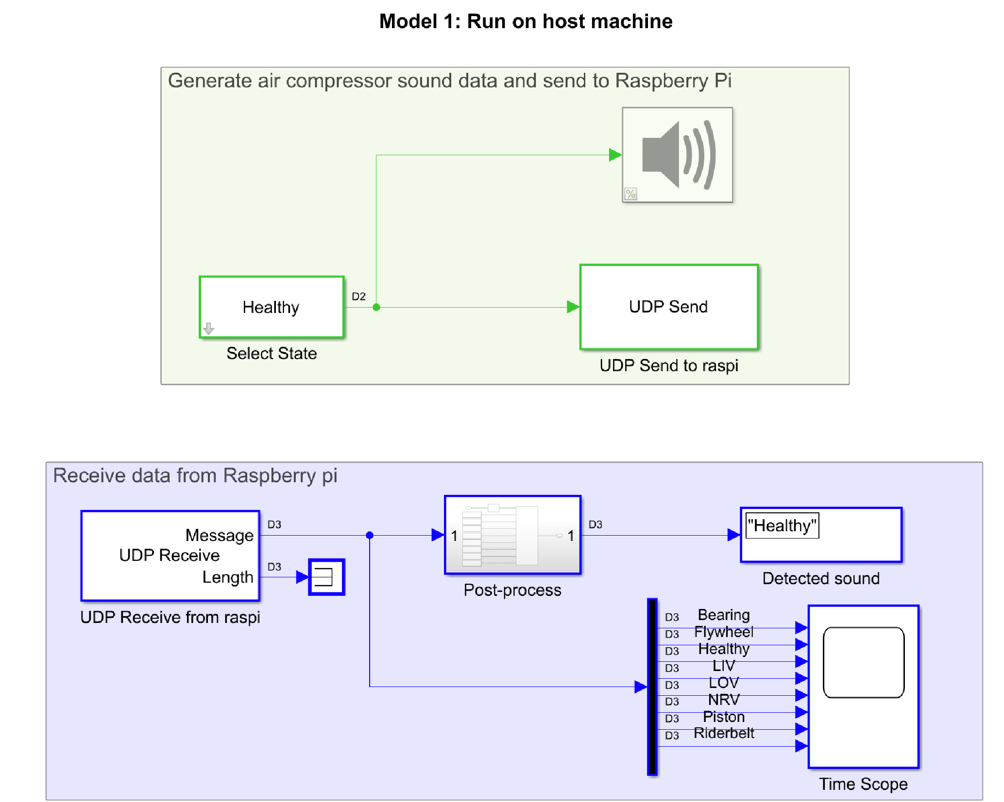 This example uses two Simulink models to illustrate detection of air compressor sounds on a Raspberry Pi device.