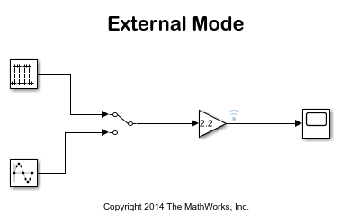 This section shows you how to run a Simulink model in External mode. When you are prototyping and developing an algorithm, it is useful to monitor and tune the algorithm while it runs on hardware. The External mode feature in Simulink enables this capability.