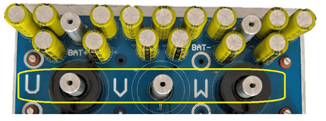 • Connect the three motor phases to the U, V, and W terminals on the Inverter board.
