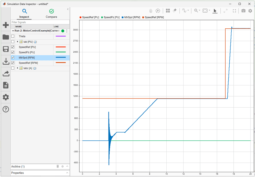 4. Click Data Inspector on the Simulation tab. The desired signal of interest can be logged and viewed in Simulink data inspector.