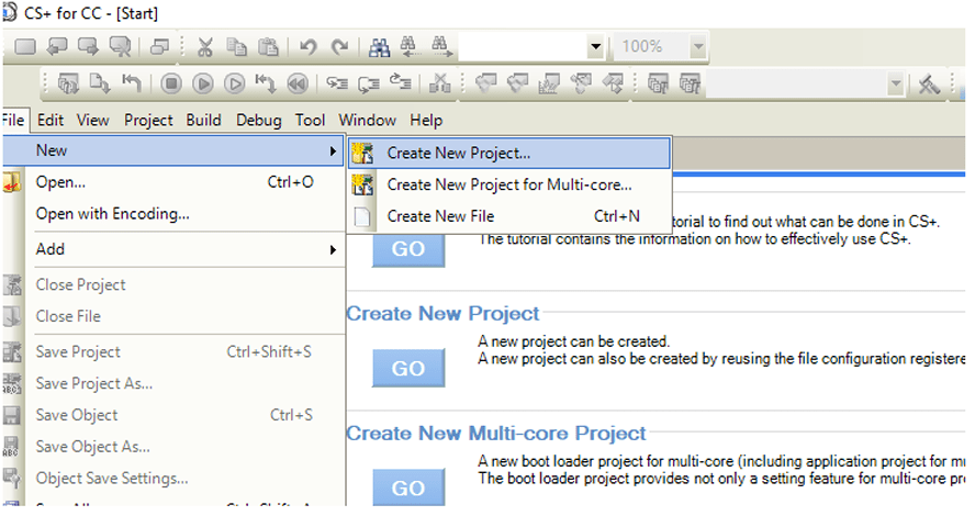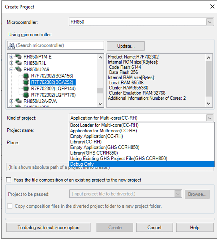 3. Start CS+ and create a new debug project as shown below.