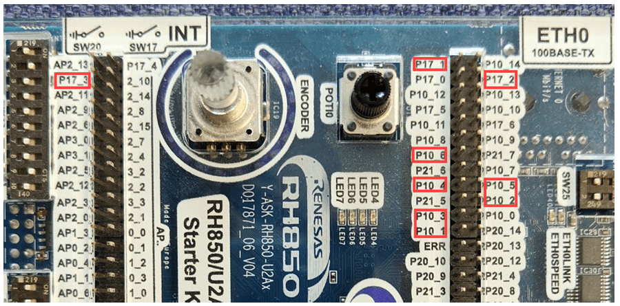 • Locate the analog pins: P17_1 (Ia), P17_2 (Ib), and P17_3 (Ic) and connect them for analog input/output.