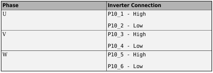 • Locate the PWM pins, P10_1 to P10_6 and connect them to the Inverter.