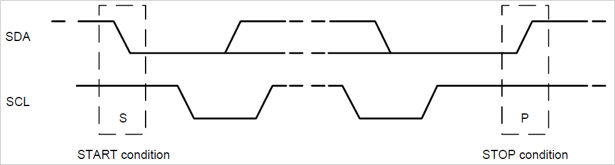 An SDA going from HIGH to LOW with the SCL still at HIGH indicates a START condition. The SDA going from LOW to HIGH with the SCL held at HIGH indicates a STOP condition. All other SDA transitions take place with SCL at low.