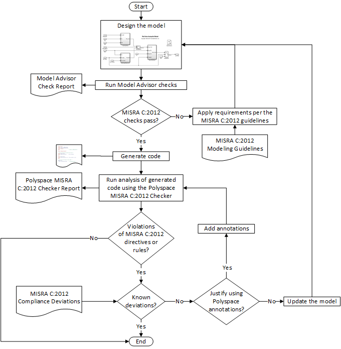 It is important to check that C code generated by Embedded Coder® from Simulink® and Stateflow® complies with MISRA C:2012 coding standards. This workflow illustrates the process of evaluating your generated code for compliance to MISRA C:2012 guidelines.