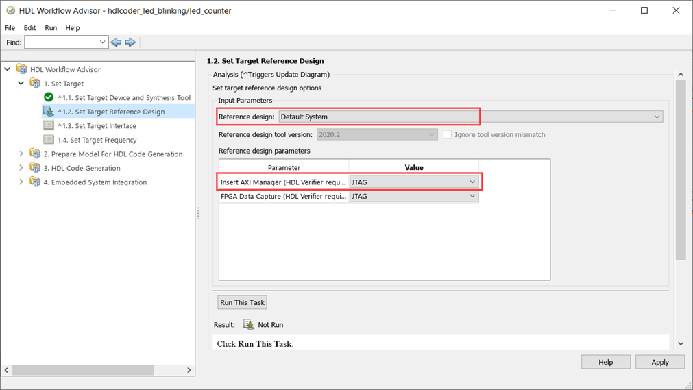 2. Run all the tasks up until Set Target Interface under Set Target of the HDL Workflow Advisor.