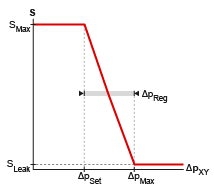• ΔpReg is that specified in the Valve regulation range block parameter.