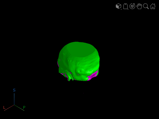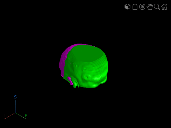 repositionobject function to change the location of a medical volume in patient coordinates without resampling the underlying voxel data. For example, apply the geometric transformation returned by a registration function to display registered volumes in the patient coordinate system usingvolshow. If your application requires you to resample the voxel data to match another volume, such as to view image slices together as an overlay or perform voxelwise comparisons, use theresamplefunction and specify theWorldTransformname-value argument.To update the orientation of the voxel data without changing the position of the volume in the patient coordinate system, use the