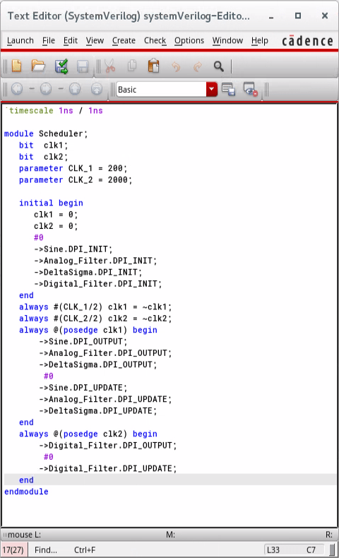 The SystemVerilog scheduler defines the sequence of execution of these three phases for each block. As the original Simulink model is multi-rate, you can recognize two major rates of execution.