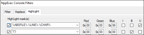 To set up this presentation of results, select Plugins > NppExec and then select the Console Output Filters option. The following options allow the previous presentation of results:
