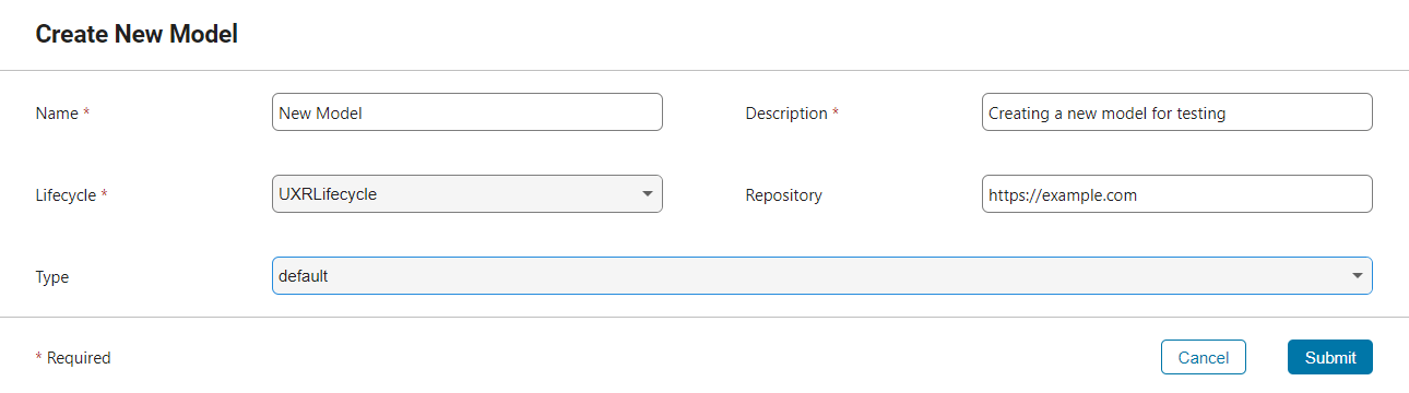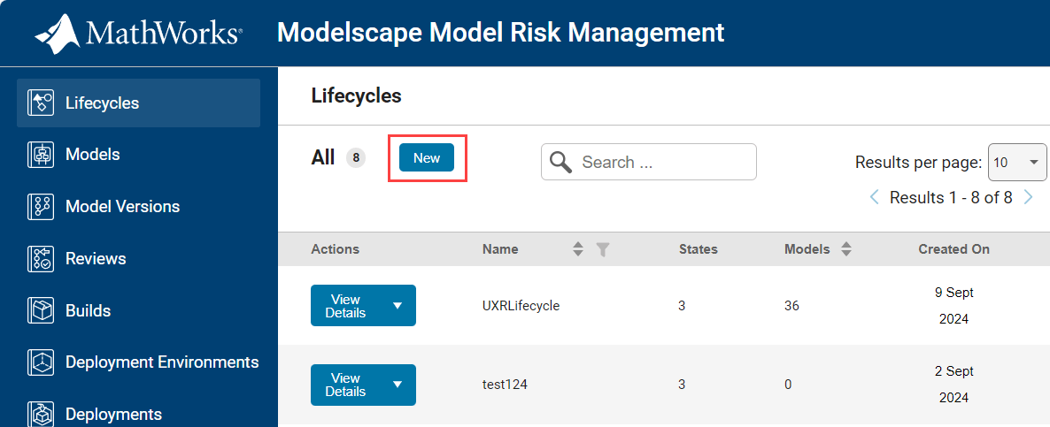 Each Modelscape model must be associated with a lifecycle. A lifecycle is a set of possible states the model can inhabit, as well as the transitions between them. Each model version must be in one of the states of the lifecycle.