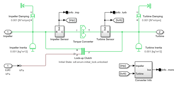 This example shows basic operations of a torque converter including lock-up clutch mechanism. You can select three different simulation cases - Basic Lock-up, Drive Mode Test, and Coast Mode Test.