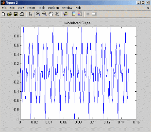 figure; plot(t(1:150),y(1:150)); title('Modulated Signal');