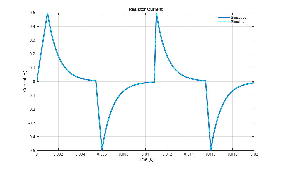 Il modello Simulink utilizza i collegamenti del segnale che definiscono il flusso di dati da un blocco all'altro. Il modello Simscape utilizza i collegamenti fisici che consentono un flusso bidirezionale di energia tra i componenti. I collegamenti fisici consentono di aggiungere ulteriori stadi al circuito RC con un semplice copia e incolla. I collegamenti di input/output richiedono la rielaborazione e la reimplementazione delle equazioni del circuito.
