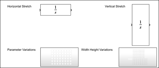 Preview the variations of the icon on Simulink® canvas. The preview options Parameter Variations and Width Height Variations are available at the bottom of the Simulink canvas.