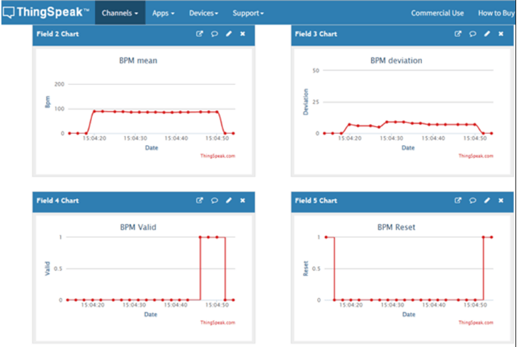 7. Open your ThingSpeak channel that you have configured in the model, to view the BPM values.