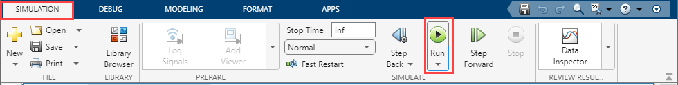 3. Click the Run button on the Simulation tab to run the host model.