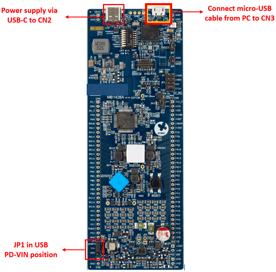 Configure the following connections on B-G474E-DPOW1 Discovery kit.
