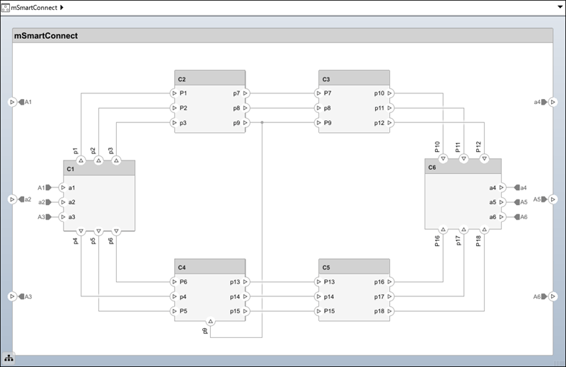 Create architecture models using built-in model element types, such as components, ports, and connections.