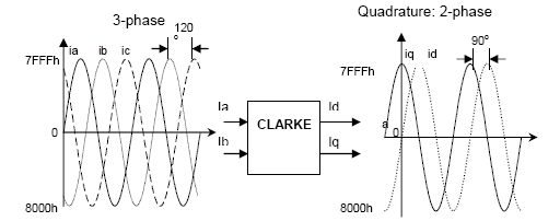 C2000 Clarke Transformation | Clarke Transform (Motor Control Blockset) |