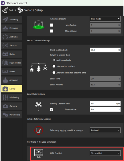 • Set the Hardware board to PX4 Host Target (the same option that you selected during Hardware Setup screens).