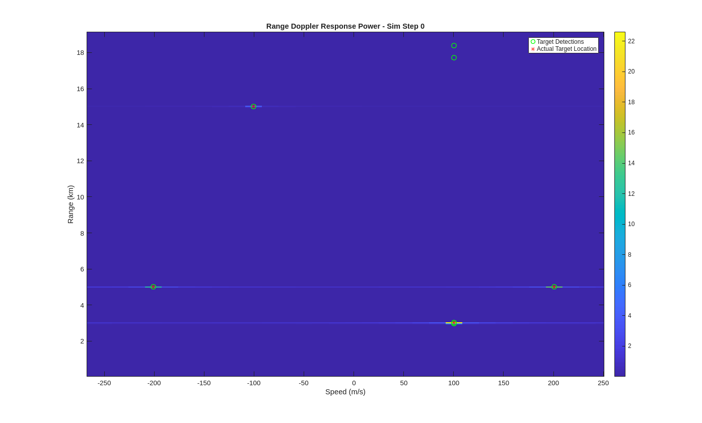 helperVisualizeRadarTargetSimulation(sl_out,sl_in,rdResponse,cfar,0,ax);