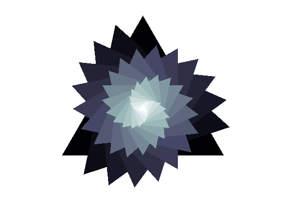 patch(i*sind(theta+18*i),i*cosd(theta+18*i),c(i,:),'edgecolor','none');