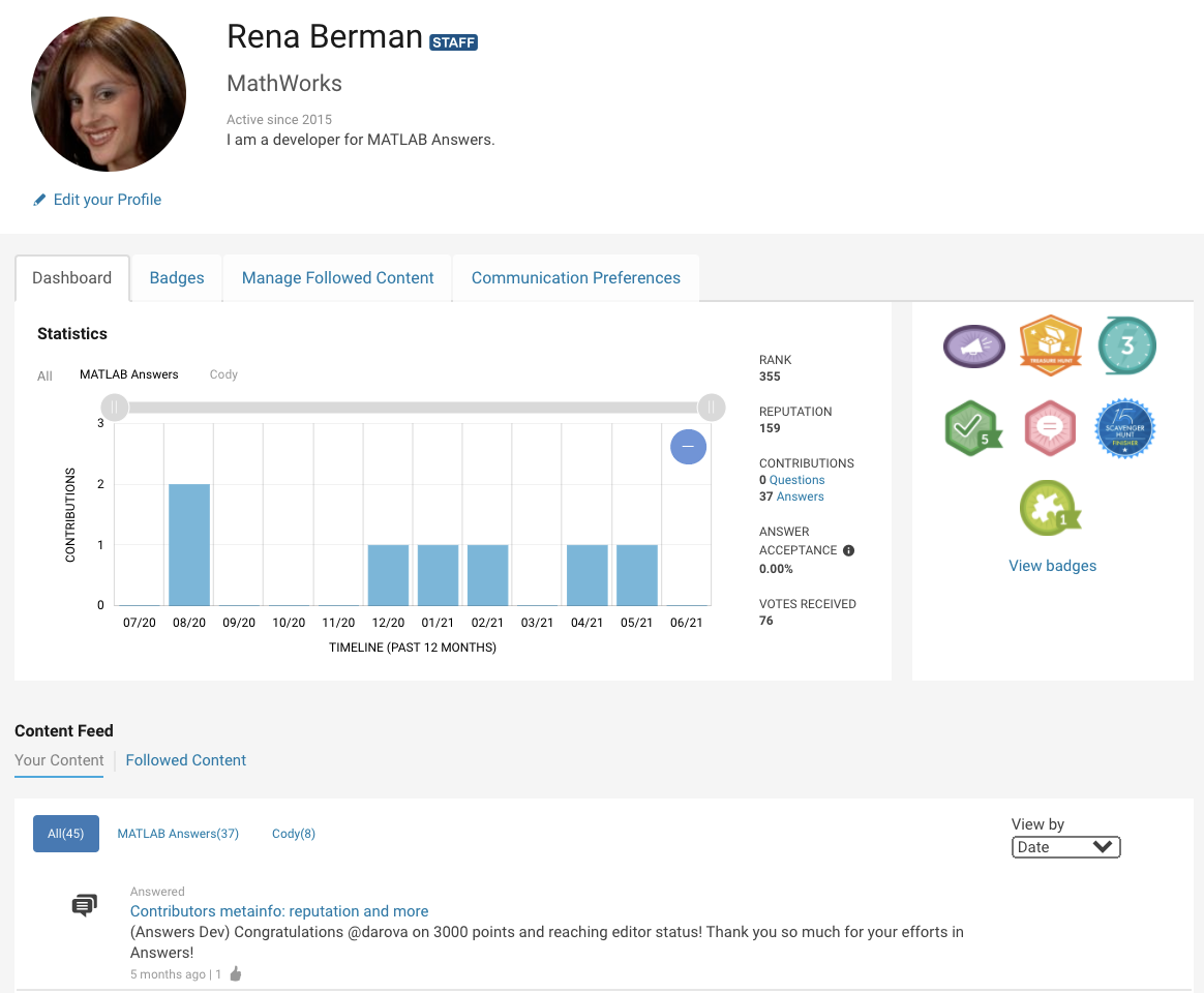 The biggest improvement is we replaced the cards and slider with a dashboard. In this Dashboard, you can easily track your activities by timeline and filter them by different applications (Answers, File Exchange, etc.). All of your stats, such as ranking and reputation, and badges earned are included in one dashboard. If you are looking at your own profile, there are tabs for managing followed content and communication preferences. We also introduced a content feed section, which brings together your contributions alongside your followed content