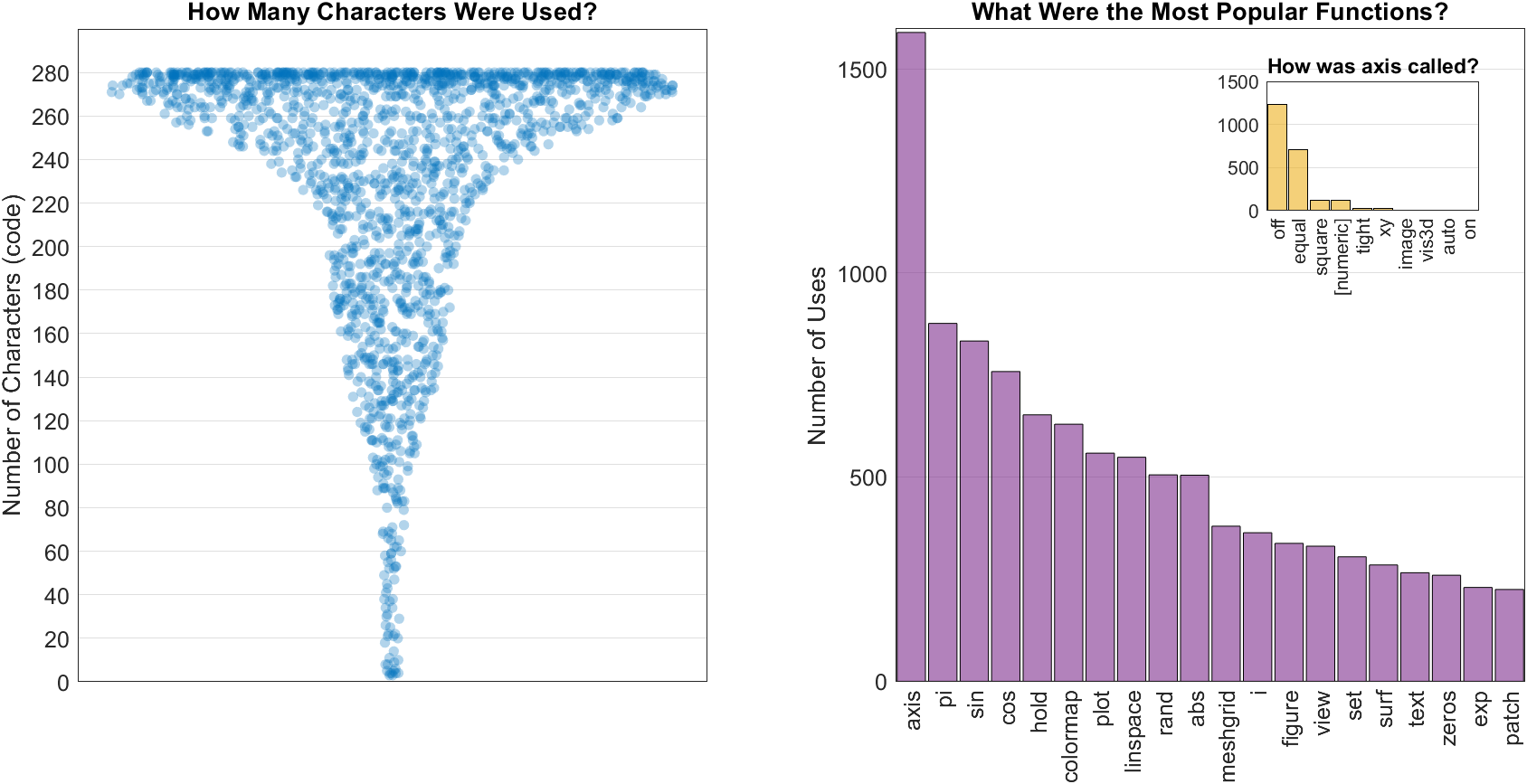 - In the MATLAB Mini Hack, use up to 280 characters of MATLAB code to generate an interesting image. Simply vote for the entries that you like or share your own entries to gain votes.
