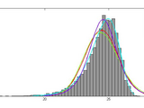 This small function is just an extend of MATLABs histfit() function, which fits one distribution of choice to a dataset. But sometimes its more usefull to see how different distribution fit to your data in one figure and to compare them visually. For this purpose i wrote this extended histfit function called multiplehistfit, which works quite similar to the original one.