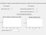 This app will plot the variation of u velocity and absolute shear stress across the width of a channel for pressure driven flow